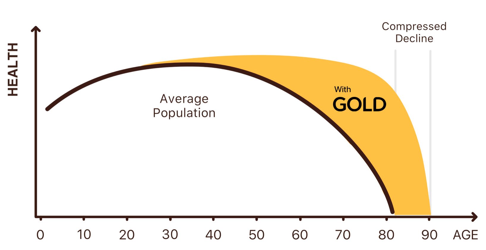 GOLD harnesses cutting-edge science and insights from champion athletes to preserve or build lean muscle mass which is a key metabolic driver for sustainable fat loss. Something that GLP-1 drugs cannot do. And by focusing on reducing visceral fat, the harmful fat stored around your organs, you can significantly lower your risk or reverse chronic diseases like diabetes. GOLD delivers sustainable improvements in body composition.